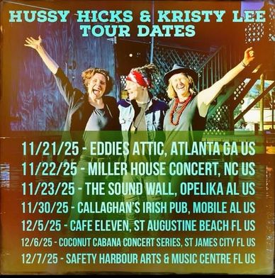 OUR NEXT CONCERT: KRISTY LEE w/HUSSY HICKS 2pm SATURDAY DEC 6, 2025!!